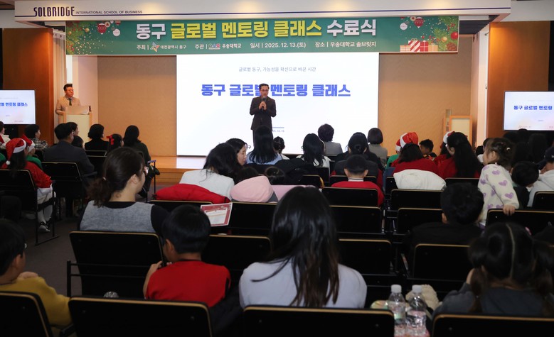 [동구 세계타임즈=이채봉 기자] 대전 동구(구청장 박희조)는 지난 13일 우송대학교 솔브릿지 경영대학 대강당에서 ‘동구 글로벌 멘토링 클래스’ 수료식을 개최했다고 밝혔다.