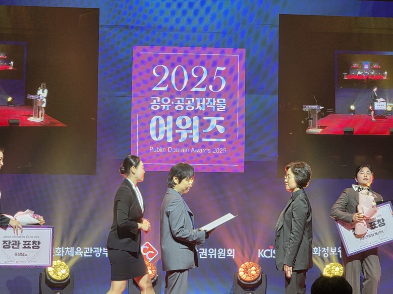 특히 ‘2025∼2026 충남 방문의 해’를 기념해 제작·공개한 관광 캐릭터 ‘워디(Woody)’와 ‘가디(Gardy)’를 활용한 이모티콘 46종 및 브랜드 웹툰 ‘충남기행’은 공공저작물의 창의적 활용 우수사례로 꼽혔다.