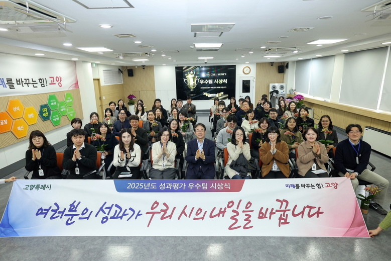 본청(1그룹) 최우수팀에는 ▲ 보건복지부 ‘2025년 장애인일자리사업 우수참여자’ 최우수상 수상 등 체계적인 장애인복지 서비스를 추진한 장애인복지과 장애인지원팀 ▲ 경기도 지방세 체납정리업무 평가 대상 수상 및 체납액 최소화에 기여한 징수과 체납행정팀 ▲ 2025년 경기도 성별영향평가 정책개선 우수사례 경진대회 기관표창 우수상 및 노인복지 정책을 수립한 노인정책팀 ▲‘고양콘 신드롬’을 통해 2025년 경기도 세외수입 연구발표대회 최우수상을 수상한 문화예술과 문화정책팀 등이 선정됐다.
