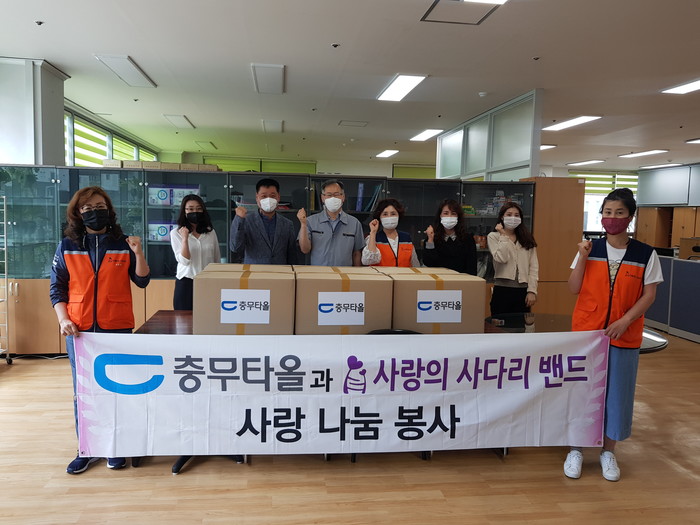 충무타올과 사랑의 사다리 밴드는 대전시 소외계층을 위하여 매월 1회~2회 정기적으로 고급타올 나눔후원을 펼치고 있다.
