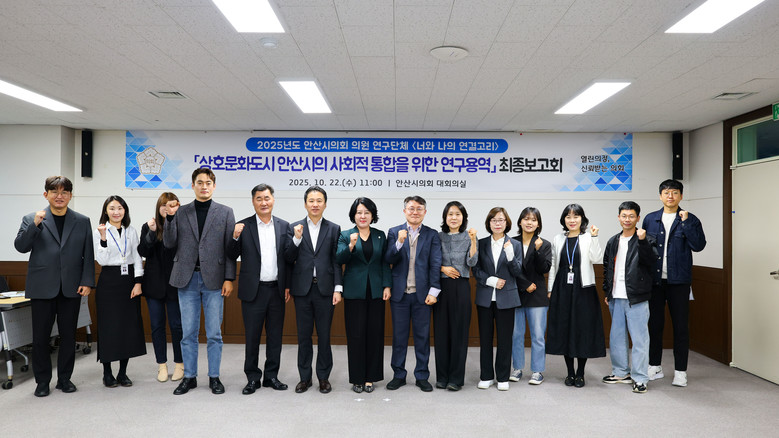 [안산시 세계타임즈=송민수 기자] 안산시의회 의원연구단체 ‘너와 나의 연결고리'(대표의원 황은화)가 22일 상호문화도시 안산시의 사회적 통합을 주제로 한 연구용역의 최종보고회를 개최했다.