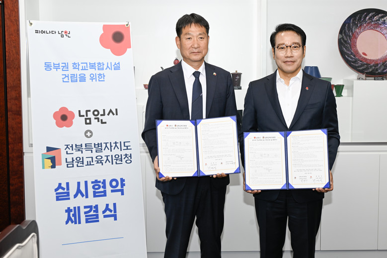 최경식 남원시장은 “이번 협약은 단순한 공간 조성을 넘어, 교육과 돌봄, 복지와 문화가 연결된 지역사회 통합 플랫폼을 만들어가는 첫걸음”이라며, “지방소멸과 학령인구 감소라는 위기를 극복하기 위해 남원시는 앞으로도 교육청과의 협업을 확대하며 전국적인 선도모델이 될 수 있는 지역 맞춤형 복합시설을 완성해 나가겠다”고 밝혔다.
