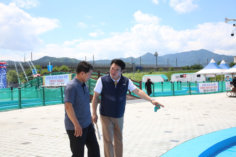| ▲ 칠곡보야외물놀이장(왼쪽부터 김태희 행정복지위원장 이상승 의장) |
