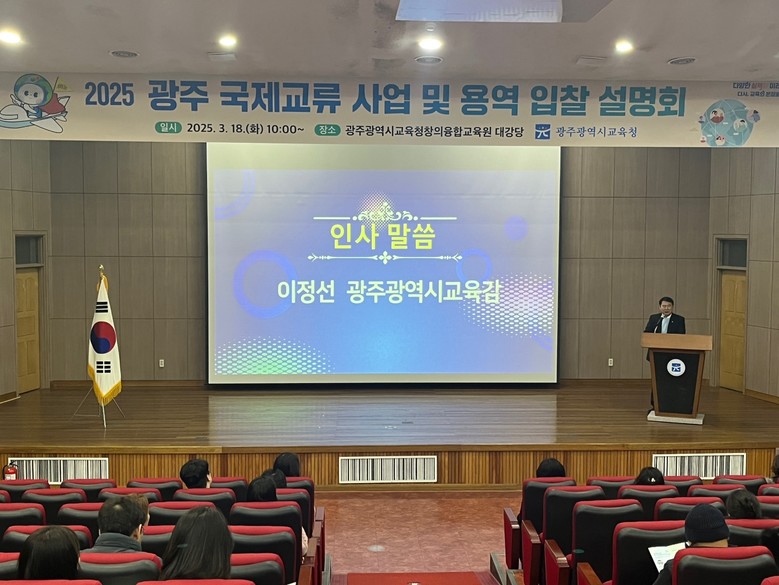 [광주 세계타임즈=손권일 기자] 광주시교육청(교육감 이정선)은 18일 광주시교육청창의융합교육원 대강당에서 광주 지역 여행업체를 대상으로 ‘2025 광주 국제교류 사업 및 용역 입찰 설명회’를 개최했다.