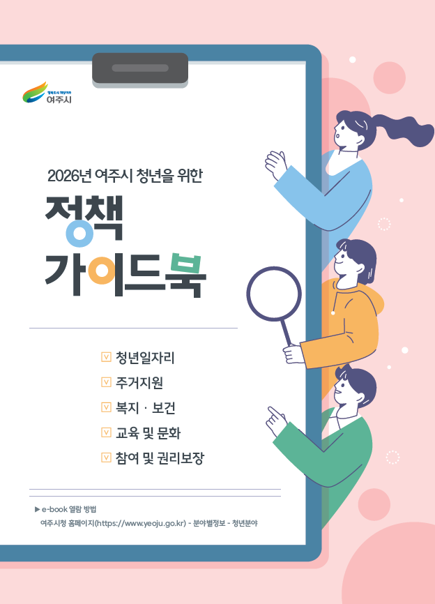 청년정책 가이드북은 여주시청 홈페이지 분야별정보/청년분야에 전자책(e-book) 형태로 업로드되어 있어 누구나 열람할 수 있으며, 오프라인 책자는 주요 공공기관과 청년 활동지원센터 등에 배포될 예정이다.
