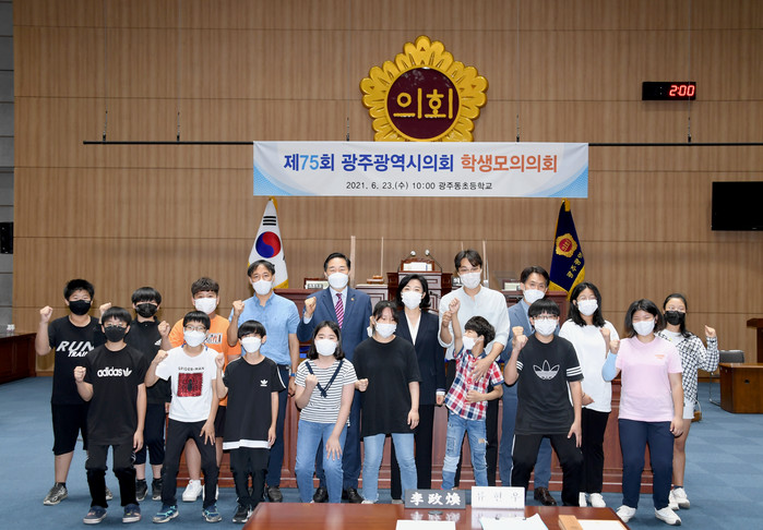 이번 학생 모의의회는 김용집 의장과 신암초등학교와 광주동초등학교가 지역구인 송형일·신수정 의원이 참관한 가운데 학생 30여명이 참여했다. 회의는 조례안 심의·의결, 2분 자유발언 등 지방의회 의정 활동을 직접 체험하는 기회의 장으로 진행됐다.