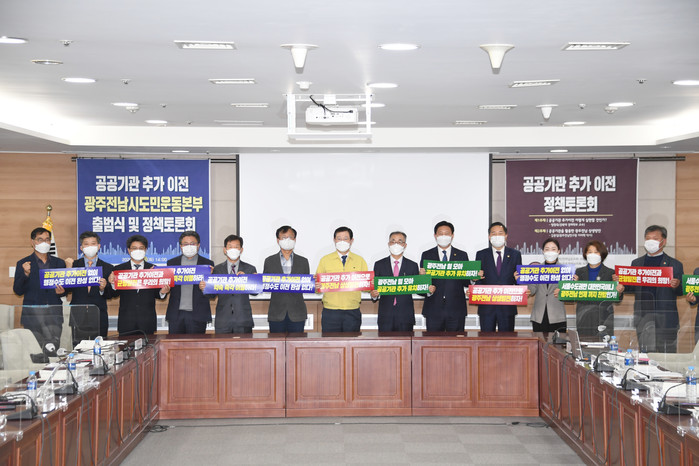 [광주=세계타임즈 손권일 기자] 광주광역시의회(의장 김용집)는 8일 오후 시의회 4층 대회의실에서 김광란 시의원이 토론자로 참석한 가운데 '공공기관 추가이전 방법과 공공기관 활용한 광주.전남 상생방안'을 주제로 정책토론회를 개최했다