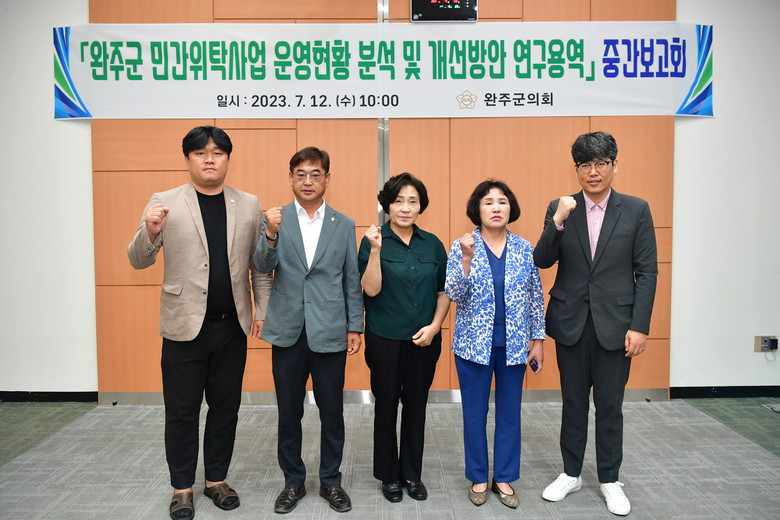 지난 4월 12일 연구용역을 시작해 중간보고회를 갖는 해당 용역은 완주군 민간위탁 사무의 분야·유형별 분류 및 현황, 관련 예산편성 현황 및 수탁기관 선정절차, 사무운영 및 성과평가 제도 등을 점검해 관련 조례 필요성을 검토해 개선안을 제시할 계획이다.