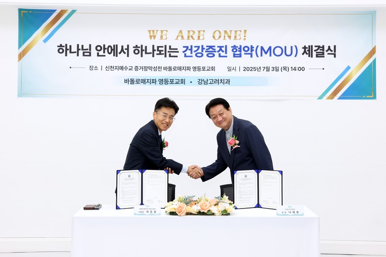 신천지예수교 증거장막성전 바돌로매지파 영등포교회(지파장 곽종렬·이하 신천지 영등포교회)가 성도들의 건강 증진과 교회의 복지 기능 강화를 위해 강남고려치과와의 업무협약(MOU)을 3일 2시에 체결했다.