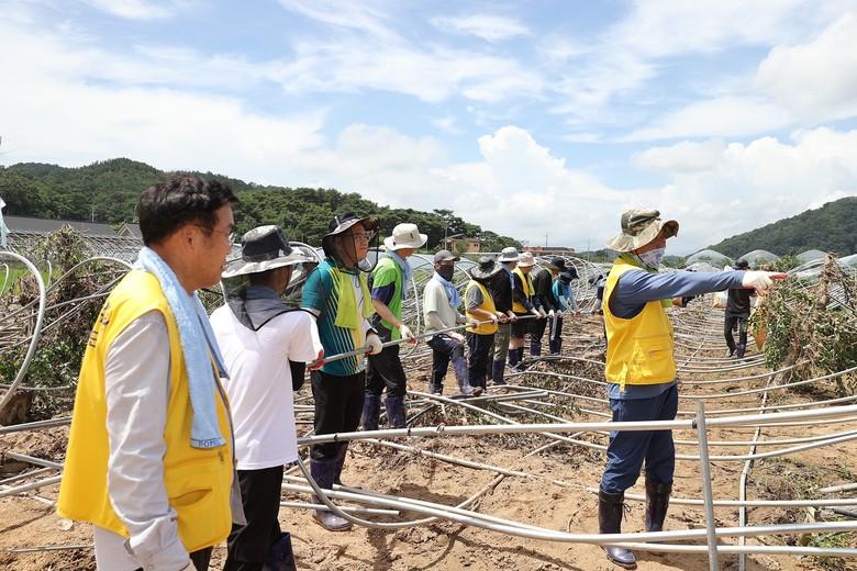 이만규 의장, 이영애 부의장 등 대구시의원들과 대구시의회 사무처 직원 60여 명은 수해로 어려움을 겪고 있는 용궁면을 찾아 주민들을 위로하고 피해복구 지원 활동에 힘을 보탰다.