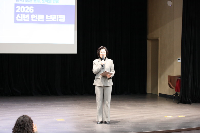 | ▲김보라 안성시장이 2026년 신년 언론브리핑을 통해 시정 운영 방향과 핵심 정책 과제를 발표하고 있다. |