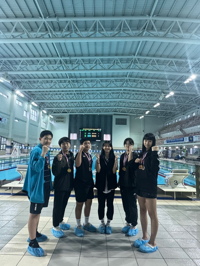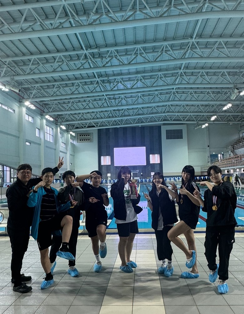 대회 첫날 혼성 혼합계영 400M에 출전한 강윤호(1학년), 서시형(3학년), 신재이(3학년), 손효서(3학년) 선수가 2분 47초 79로 1위를 차지했다. 또한 표면 50M에는 최성연(2학년)선수가 출전해 21초81을 기록했으나 아쉽게 2위에 머물렀다.