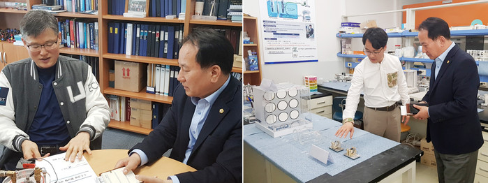 먼저 산업건설위원회 의원들은 해수전지 홍보관을 방문하여 김영식 교수(해수자원화기술연구센터장)로부터 해수자원화 기술 작동 원리에 대한 충분한 설명을 듣고 현재 중점 추진되고 있는 해수자원화 기술 사업현황을 보고 받으며 미래 신재생에너지 관련 사업을 위한 선도적인 역할을 위해 기술개발에 적극적으로 노력해 줄 것을 당부했다.