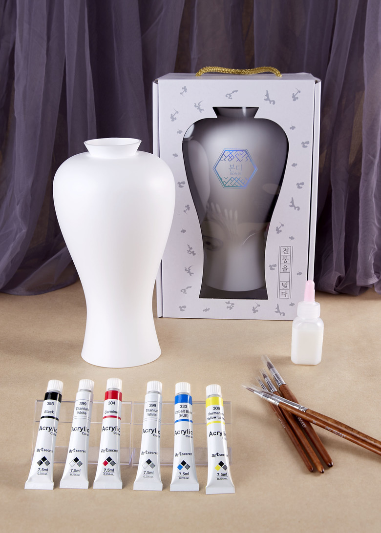 본디는 이번 전통 기획전에서 고려청자 키트와 달항아리 키트, 운학문 그립톡 세 가지를 오픈한다. 고려청자 키트와 달항아리 키트는 전통 도자기를 모티브로 한 DIY 키트로, 물감과 붓세트, 파레트, 마감재, 설명서로 구성된다.