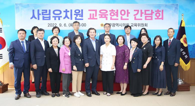교육위원회 이동욱 위원장 주재로 진행된 이날 간담회는 대구시의회 교육위원회 위원, 사립유치원연합회 임원, 대구시교육청 관계자 등이 참석하여 의견 교환 및 토론을 하였다.
