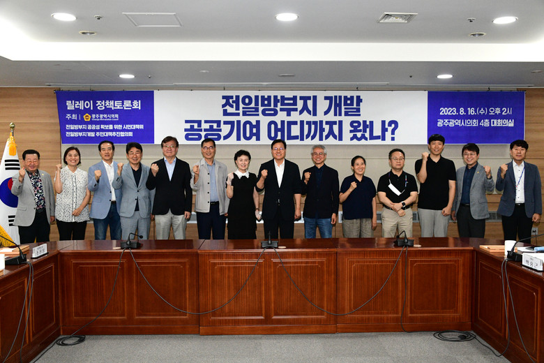 또, 안평환 의원이 좌장으로 토론회를 진행했으며, 함인선 광주시 총괄건축가, 정성구 UCL도시콘텐츠연구소 대표, 이경희 광주환경운동연합 사무처장, 이선진 전일방개발 주민대책추진협의회 공동대표가 토론자로 나섰다.