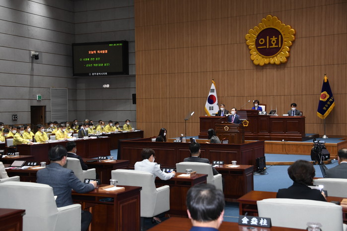 김 의원은, “현재 광주광역시 ‘도시 및 주거환경정비기본계획’에 따라, 광주 천변 주변을 비롯한 광주 도심지 내에 ‘난개발, 회색도시’ 라는 오명에도 불구하고, ‘53개단지 23,932세대’의 재개발·재건축사업 즉 아파트 신축 공사가 진행되고 있는 실정이다.”고 우려했다.