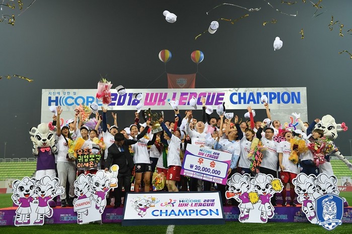 [세계타임즈 김인수기자] 지난 11월 5일(월) 인천 남동 경기장에서 진행된 “현대제철 H CORE 2018 WK리그 챔피언 결정전 2차전”에서 인천 현대제철이 경주 한수원을 승부차기 끝에 꺾으며 1차전 대패를 극복하고 대역전극을 펼치며 리그 6년 연속 통합 챔피언에 등극 하였다.