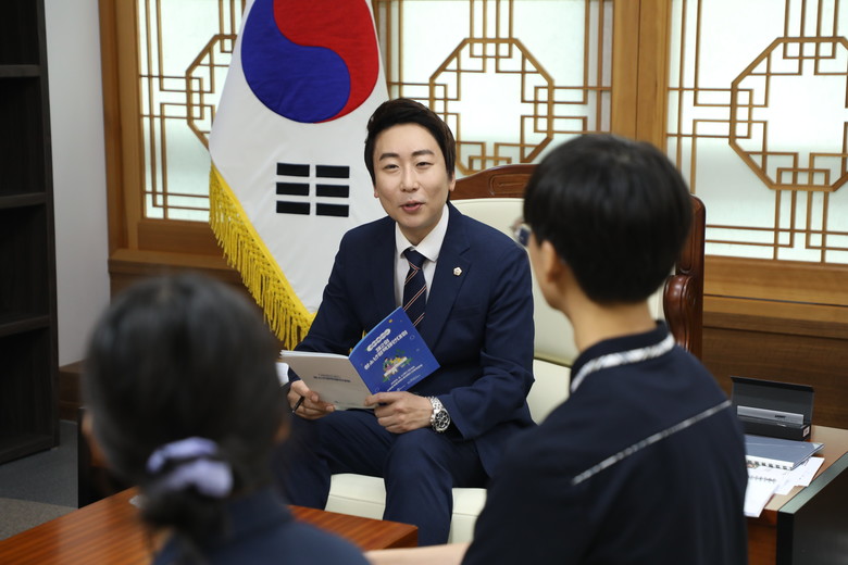 임 의장은 의회를 찾은 입상자와 청소년참여위원으로부터 지난 6월 열린 청소년정책제안대회의 스케치 영상과 소책자를 소개받은 뒤 대회에서 수상한 정책에 관해 경청하는 시간을 가졌다.