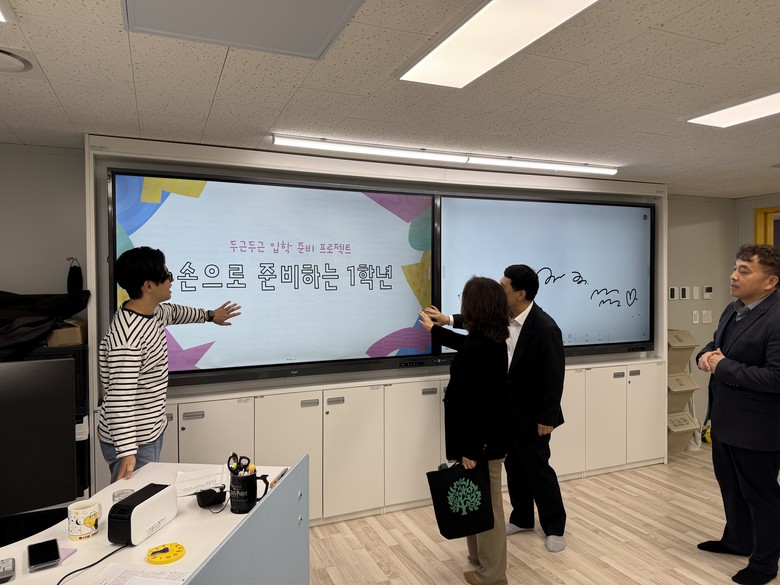 준공 후 파주교육지원청 전선아 교육장은 변화된 학교를 방문하여 학교 사용자의 의견을 청취하고 현재 설치된 스마트기기가 교수학습 활동에 어떻게 적용되는지를 현지 확인하였다.