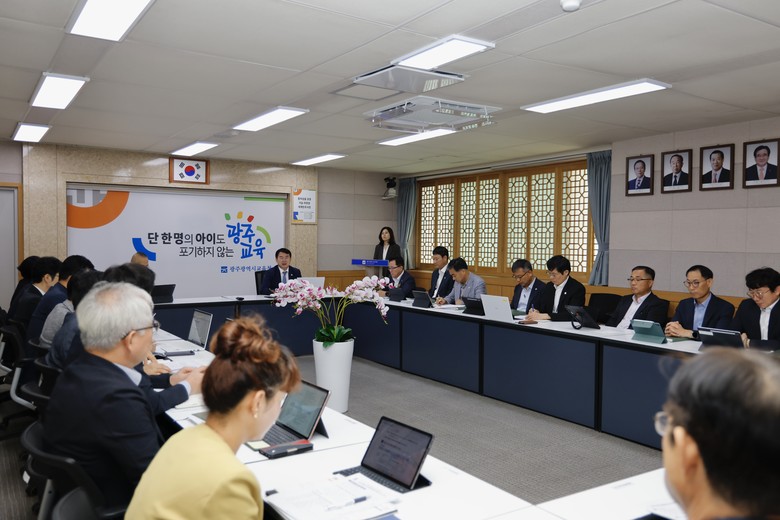 이날 회의는 이정선 교육감, 최승복 부교육감, 동·서부교육지원청 교육장, 광주시교육청시민협치진흥원장, 본청 국·과장이 참석한 가운데 12대 중점 추진 과제별 이행 현황을 점검하고 성과 제고를 위한 보완책을 논의하는 순으로 진행됐다.