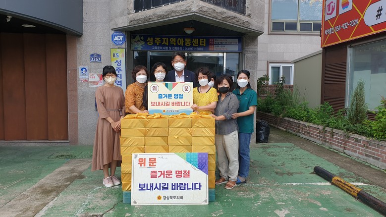 [경북 세계타임즈=한성국 기자] 경상북도의회 강만수 도의원은 9월 6일 민족의 대명절인 추석을 맞이하여 소외된 이웃들에게 따뜻한 마음을 전하기 위해 성주지역아동센터 등 성주군 관내 4개 지역아동센터에 위문품을 전달했다.