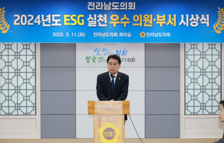 한편, 전라남도의회는 2023년부터 ESG를 실천해 오고 있으며, 지방의회 최초로 이에스지(ESG) 실천 조례를 제정하는 등 ESG 가치 확산을 위한 앞장서 왔다.