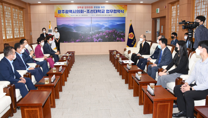 [광주=세계타임즈 손권일 기자] 광주광역시의회(의장 김용집)는 9월 7일(화) 시의회 열린시민홀에서 조선대학교와 대학생 모의의회 운영을 위한 업무협약을 체결했다고 밝혔다.