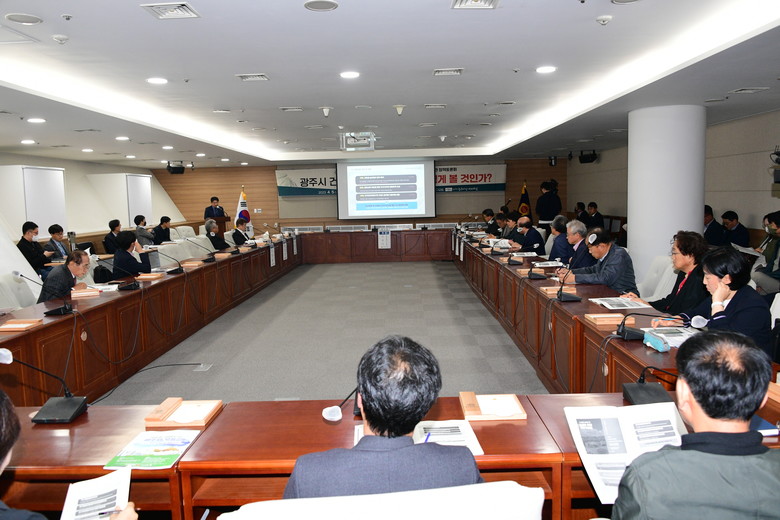 광주시의회는 4월 5일 오후 3시, 시의회 4층 대회의실에서 박수기 시의원을 좌장으로 ‘건축물 층수제한 폐지, 어떻게 볼 것인가’를 주제로 각계 전문가와 시민들의 의견을 수렴하는 정책토론회를 열었다.