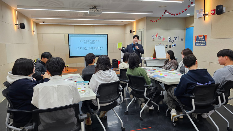 이날 행사에서는 꿈뜨락 운영단 소속 청소년 16명이 참여했으며, 아로마 테라피를 활용한 감정 표현 프로그램, 운영단 사업 소개, 그리고 리더십 및 회의법 교육 등 다양한 활동이 진행됐다.
