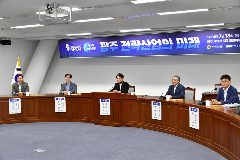 기조발제를 맡은 광주테크노파크 김영집 원장은 “발전전략 2030의 핵심가치와 실행방안으로 ▲초격차 선도기술 확보를 위한 과감한 투자로 첨단기술을 선도하는 광주, ▲실증기반 기업지원으로 혁신기업이 성장하는 광주, ▲미래혁신을 선도할 10만 창의인재가 모이는 광주”가 돼야 한다고 강조했다.