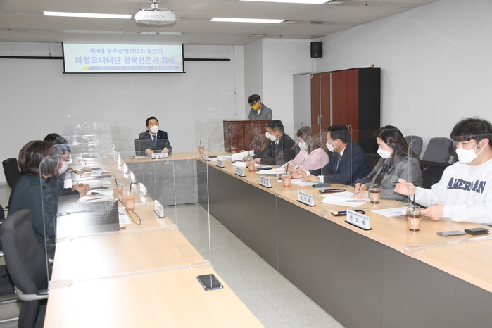 이날 회의는 제8대 후반기 의정모니터단 정책전문가 활성화 방안을 논의하기 위해 마련됐으며, 코로나19 위기상황을 감안하여 사회적 거리두기 방역수칙을 철저히 준수하며 진행됐다.
