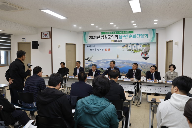 임실군의회의 읍·면 순회간담회는 지난해에 이어 두 번째 실시하는 간담회로, 5일(강진면, 청웅면), 7일(덕치면, 삼계면), 13일(지사면), 15일(오수면)에 이장단 및 사회단체장, 주민들이 참여한 가운데 진행됐으며, 의정활동 및 지역발전 방향에 대한 지역 주민의 의견을 듣고, 열린 의회를 지향하고 일하는 의회의 모습을 알리기 위하여 마련됐다.