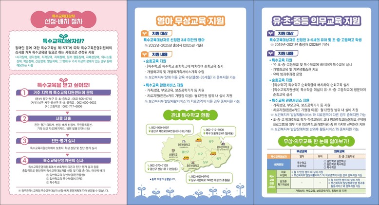 자료는 영아부터 고등학생까지 특수교육대상자 선정 및 배치와 무상·의무교육 지원 등에 대한 안내를 담은 리플릿 1종과 포스터 1종 등 총 2종이다.