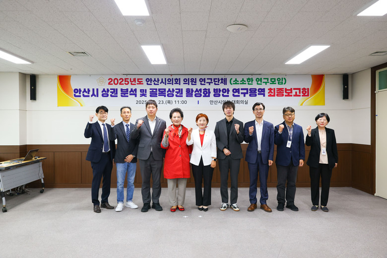 현옥순 대표의원은 “이번 연구는 안산시 골목상권의 체계적 진단과 실질적 활성화 방향을 제시한 것으로 시민과 상인이 함께 성장하는 자립형 상권 생태계 마련에 큰 밑거름이 될 것”이라고 기대감을 나타낸 뒤, “의회 차원의 꾸준한 관심과 정책적 지원을 통해 안산시 골목상권이 시민의 자긍심을 높이는 도시 브랜드로 발전할 수 있도록 노력하겠다”고 다짐했다.