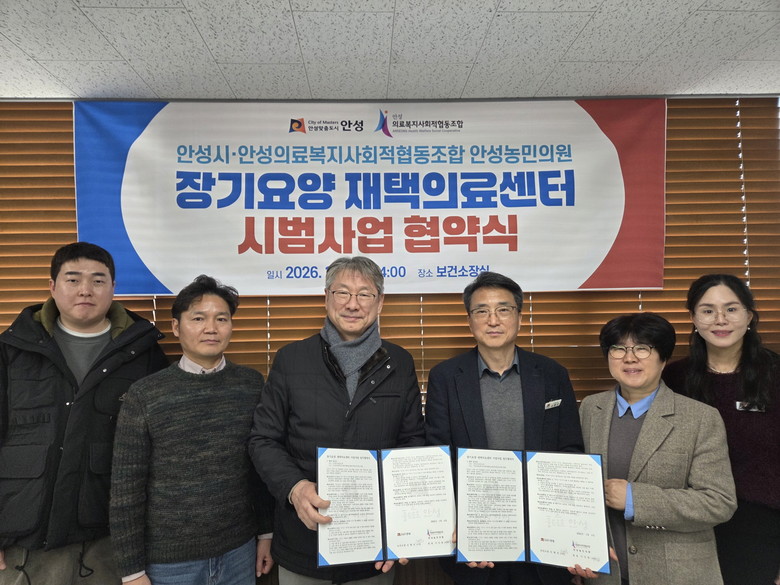 [안성시 세계타임즈=송민수 기자] 안성시는 지난 6일 안성의료복지사회적협동조합 안성농민의원과 장기요양 재택의료센터 업무협약을 체결했다고 밝혔다.