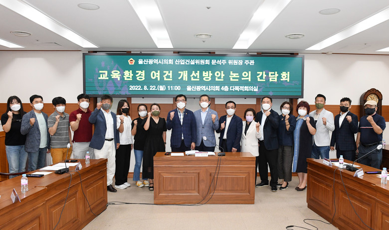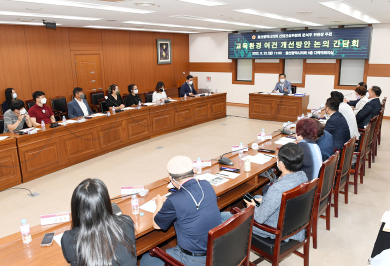 [울산 세계타임즈=이호근 기자] 울산광역시의회 문석주 위원장(산업건설위원회)은 22일 오전 11시, 시의회 4층 다목적회의실에서 북구 농소지역 중·고등학교 신설 및 과밀학급 해소방안 마련을 위한 ‘교육환경 여건 개선 논의 간담회’를 개최했다.