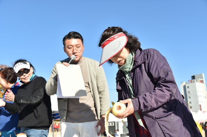 ▲ 사과껍질 길게 깎기