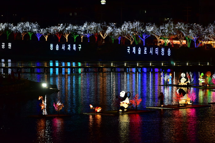 ▲ 사과축제장 유등으로 물들은 용전천