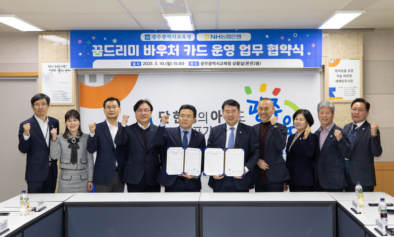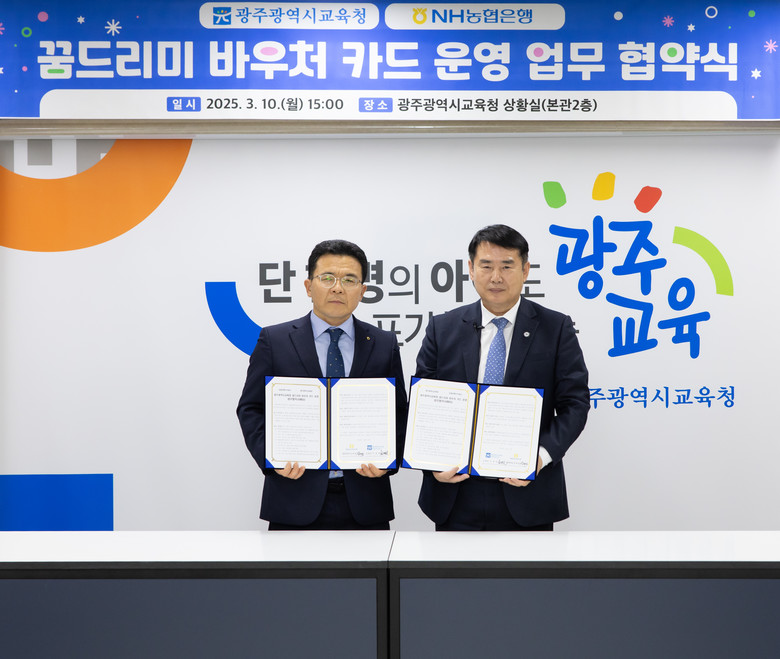 [광주 세계타임즈=손권일 기자] 광주시교육청(교육감 이정선)과 NH농협은행은 10일 시교육청 상황실에서 ‘2025~2026년 꿈드리미 바우처 카드 운영을 위한 업무협약’을 체결했다.
