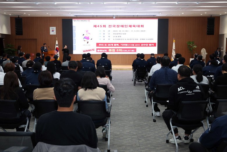 충남 선수단은 오는 10월 31일부터 11월 5일까지 6일간 부산광역시 일원에서 열리는 제45회 전국장애인체육대회에 역대 최대 규모인 선수 414명, 감독·코치 70, 보호자 및 임원 242명 등 총 726명이 참가한다.