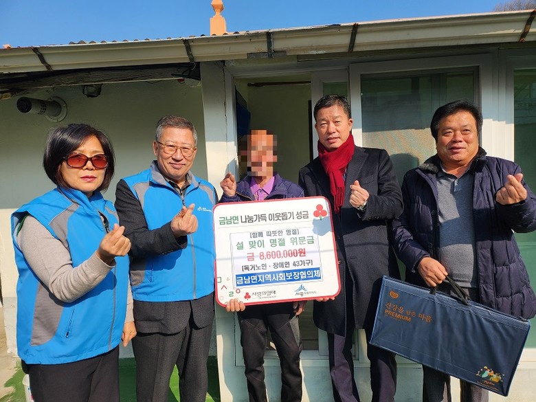 김건제 금남면장은 “이번 위문금이 명절을 홀로 보내거나 어려움을 겪고 계신 이웃들에게 작은 위로와 희망이 되어 따뜻한 명절을 보내는데 도움이 되길 바란다”고 말했다.