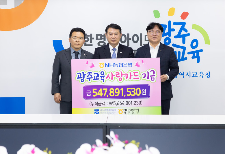 [광주 세계타임즈=손권일 기자] 광주시교육청(교육감 이정선)은 24일 본청 상황실에서 NH농협은행으로부터 지난해 광주교육사랑카드 적립금 5억4천789만 원을 전달받았다.