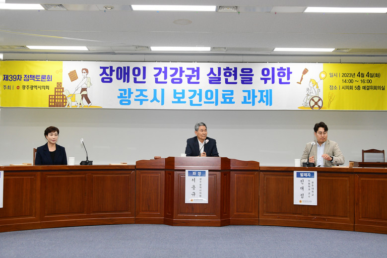 [광주 세계타임즈=양준호 기자] 광주광역시의회는 4일 오후 2시 시의회 5층 예결위 회의실에서 ‘장애인 건강권 실현을 위한 광주시 보건의료 과제’ 라는 주제로 정책토론회를 개최했다.