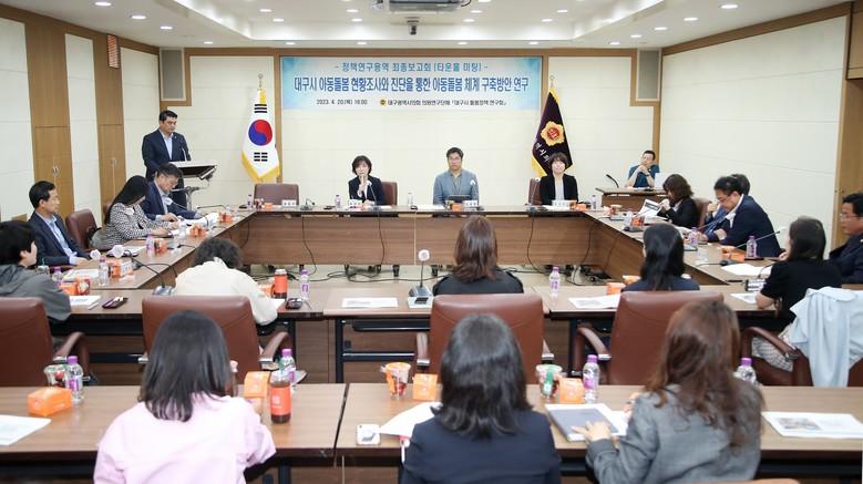 연구회 대표인 육정미 의원은 “이번 용역 결과를 반영해 대구형 아동돌봄 체계 구축을 위한 조례 제정 및 사업 추진을 위해 노력하겠다”며 ”오늘 이 자리가 대구시 아동돌봄 사각지대 해소를 조금이라도 더 앞당길 수 있는데 기여하도록 하겠다“고 포부를 전했다.