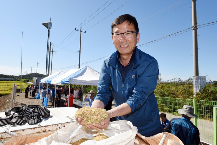 20일 오전 한국농촌지도자 김포시연합회의 공동답 벼 베기 행사가 김포시 대곶면 약암리에서 열렸다.