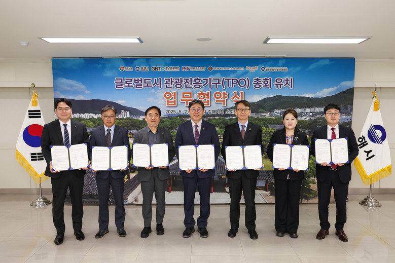 [김해시 세계타임즈=최성룡 기자] 김해시(시장 홍태용)는 2일 김해시청 소회의실에서 경남도와 2027년 글로벌도시 관광진흥기구(TPO) 총회 유치를 위한 업무협약을 체결했다.