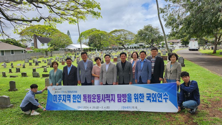 전남도의회 기획행정위원회(위원장 신민호)는 28일(현지시간) 미국 하와이 오하우 지역의 무명 애국지사 묘지를 찾아 일제강점기 이곳에서 항일독립운동에 앞장선 이름 없는 지사의 넋을 기리고 위로했다고 밝혔다.