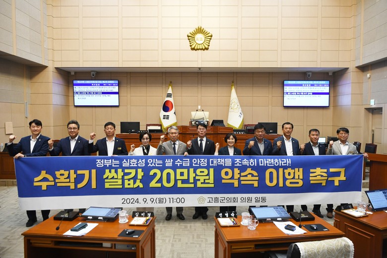 고흥군의회는 촉구 건의안을 대통령실과 국회, 국무조정실, 기획재정부, 농림축산식품부, 전국 의회, 전국 시군구 등에 전달할 예정이다.