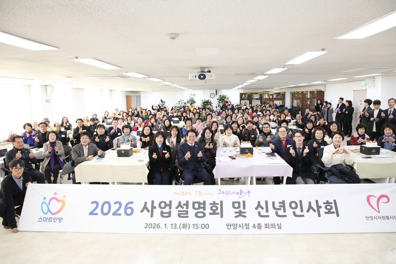 [안양시 세계타임즈=송민수 기자] 안양시자원봉사센터(이사장 최대호)는 지난 13일 오후 3시, 안양시청 4층 회의실에서 ‘2026 사업설명회 및 신년인사회’를 개최하고, 새해 자원봉사 정책과 협력 방향을 공유하는 뜻깊은 시간을 가졌다고 14일 밝혔다.